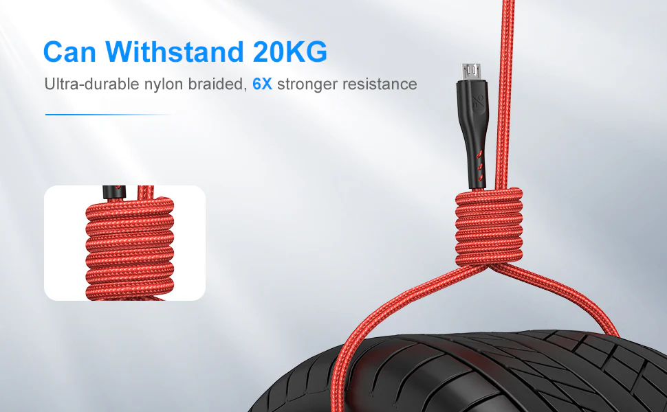 Tested to last over 50,000 bends, the nylon-wrapped, Kevlar-reinforced cable allows for heavy use without any connection issues or failures. Despite twists, tweaks, or turns, these cables will never let up.